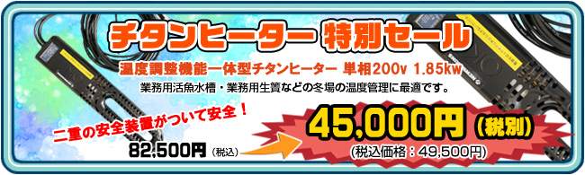 | チタンヒーターは必ず水中に入れてから通電してください。水中以外で通電(空焼)した場合、ヒーターの熱により周囲の物が熱せられ重大事故の原因になる恐れがあります。 ※ヒーターは、「水量が適正量より多い、維持する水温が高い」などの使用環境によりケーブルやコンセント部が発熱する恐れがございます。ご使用時にコンセントやケーブルに発熱を感じる場合は、「マグネットスイッチ」を使用して接続して下さい。 このヒーターは活魚水槽用ですので30℃までの使用用途となります。それより高い水温での使用をご希望の方には不向きな商品です。 ※空だき防止機能、ヒューズ内蔵で安全な水温管理が実現できます。※ヒーターは消耗品ですので、1年間使用した場合は必ず交換してください。 |